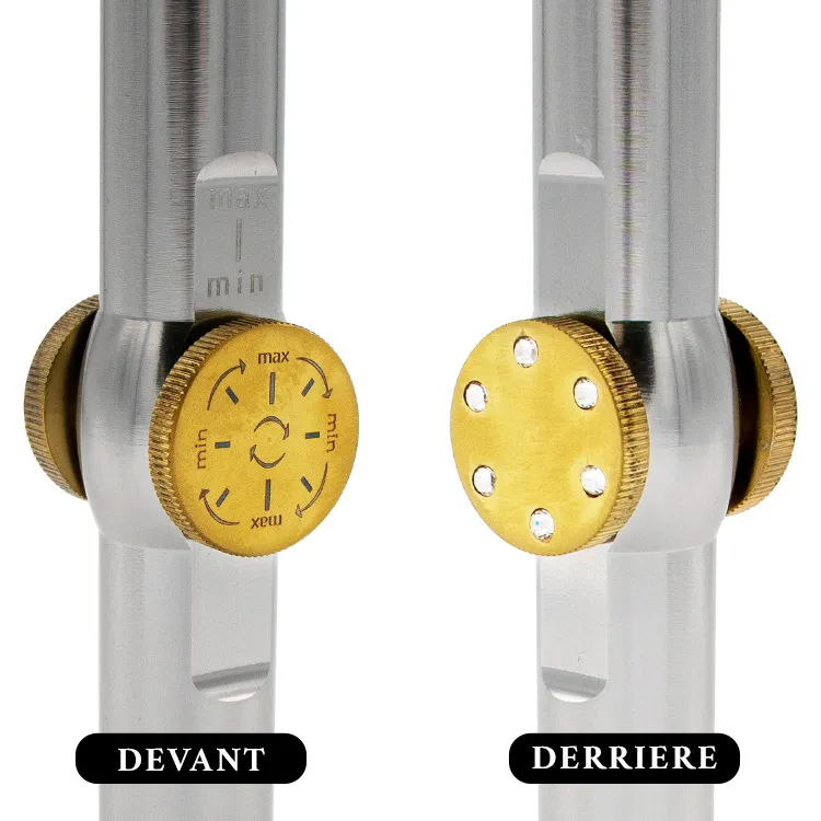 • Vergulde AirControl-draaiknop met edelstenen: Stel de luchtstroom nauwkeurig af voor optimale controle over uw sessie.